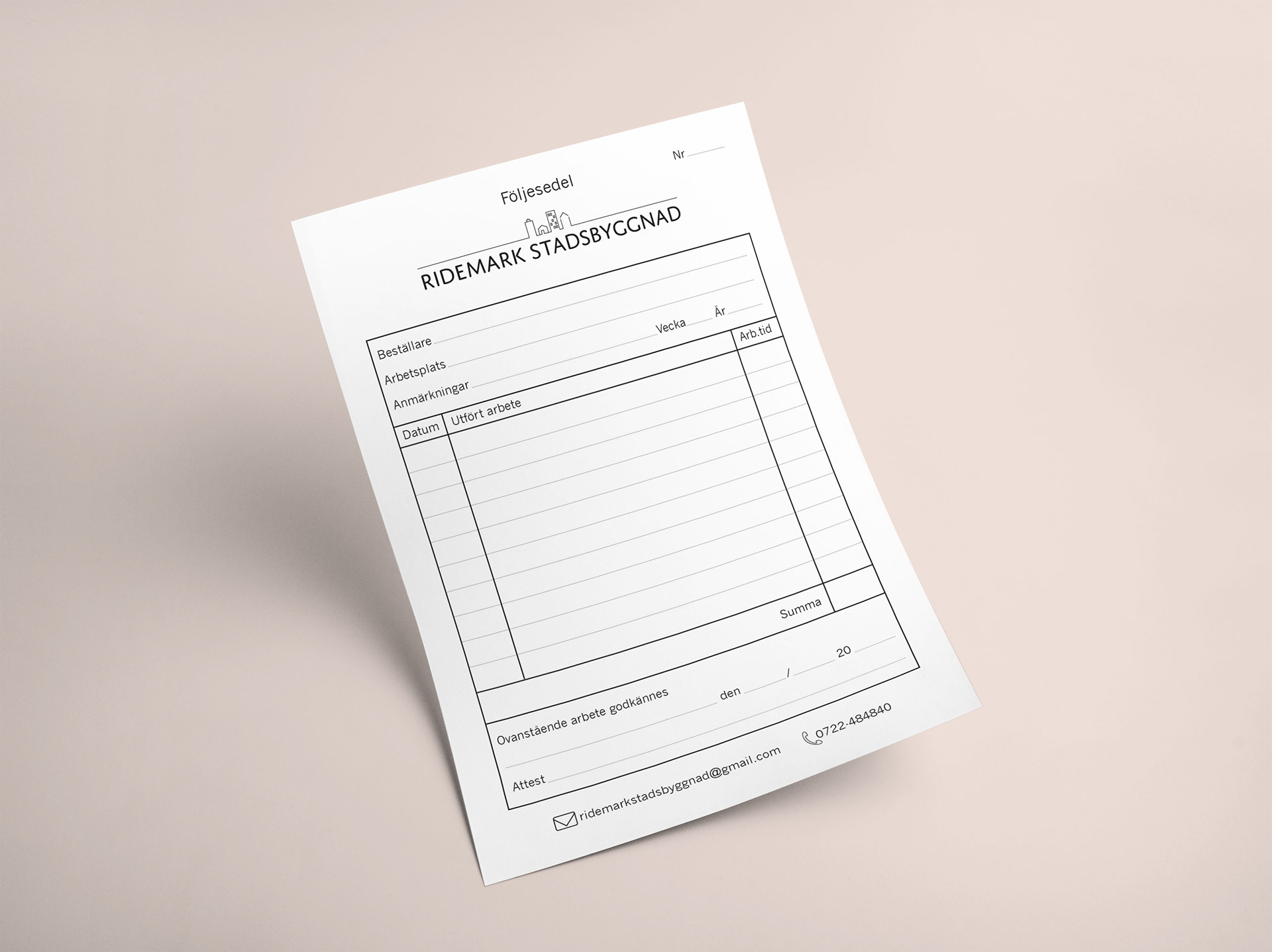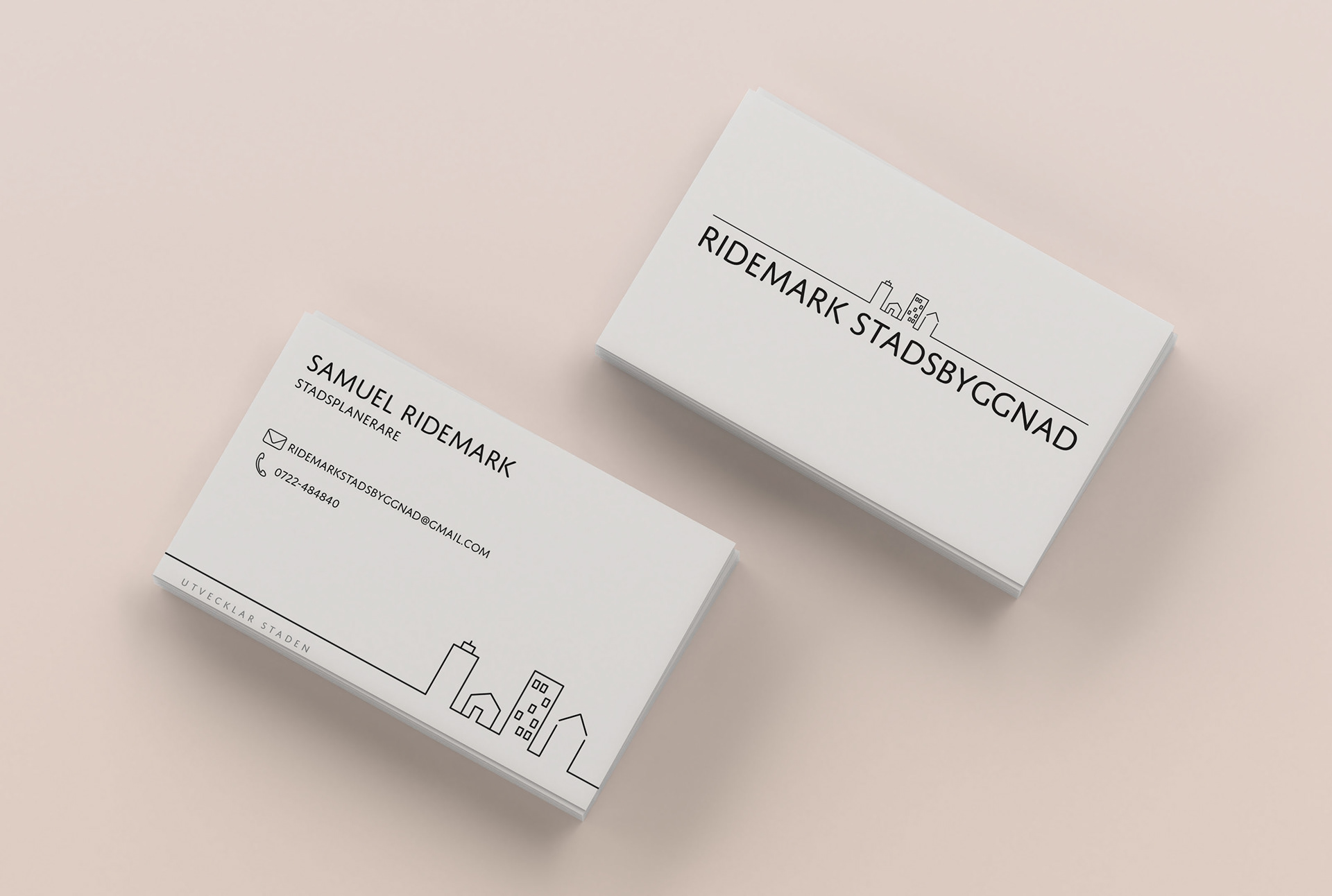 Created logo, business card and delivery order for Ridemark Stadsbyggnad.